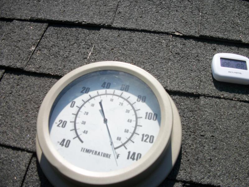 This was taken August 1st on a roof! Roofing in Dallas Tx. is hot, hot, hot. 139 degrees after about 5 minutes laying on the roof.
